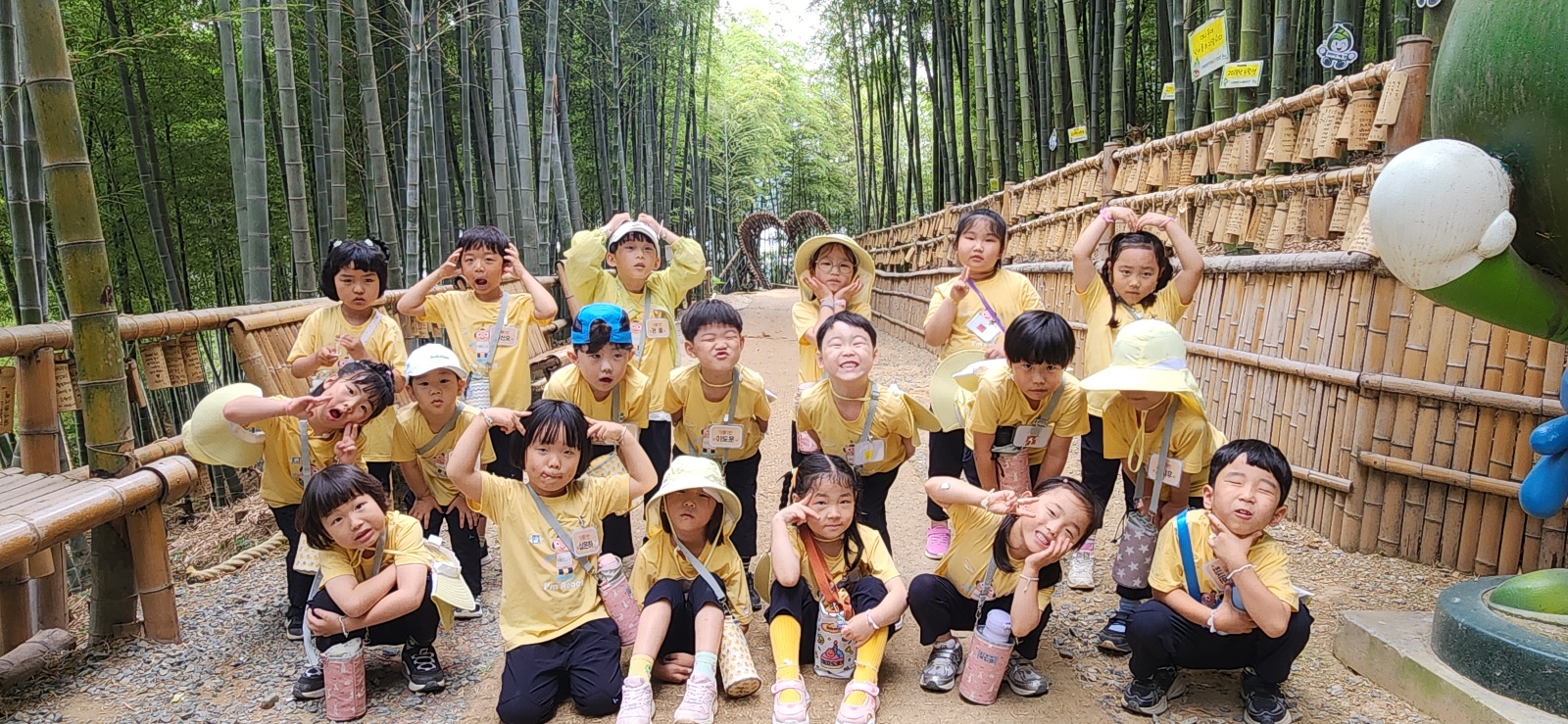 5세 가을반-맹종죽 테마파크 맹종죽이 만들어주는 시원한 그늘길을 걸으며 산책도 하고 대나무 공방에 방문해서 컵받침 만들기 체험을 해 보았습니다. "선생님 엄마한테 선물하면 엄마가 너무 좋아하실 것 같아요." "선생님 대나무를 먹으면 무슨 맛이 날까요? 저도 팬더처럼 대나무를 먹어보고 싶어요."라고 말하는 가을반 친구들이었습니다.